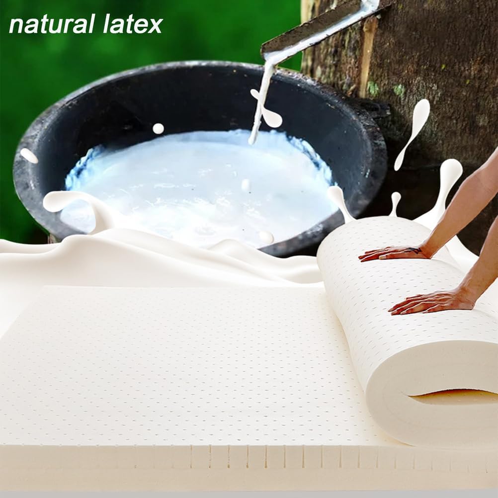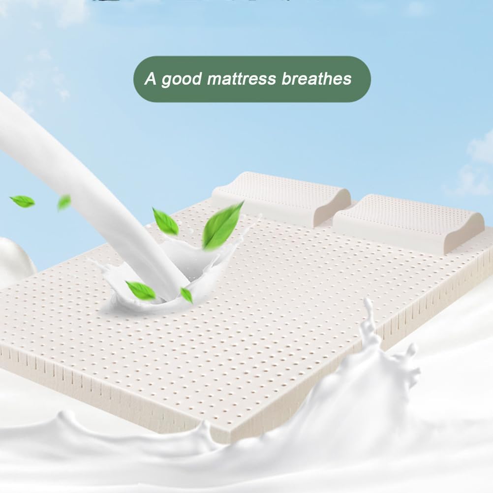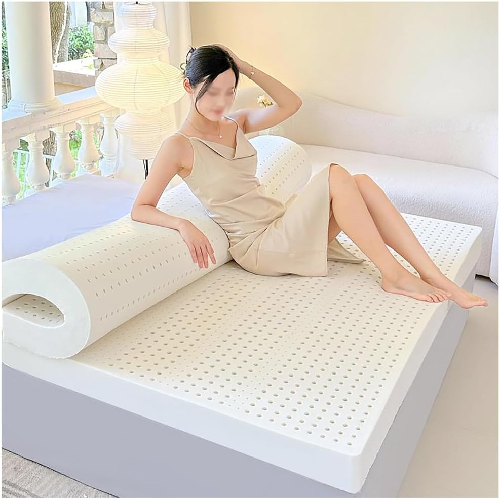 Transform your sleep experience with our premium natural latex mattress topper, crafted from 100% pure rubber tree latex. Free from artificial fillers and additives, this topper promotes a healthier sleep environment. Designed to conform to your body's unique contours, our latex mattress topper provides essential support for your spine while alleviating pressure points. This means you can enjoy a more restful and rejuvenating sleep, waking up refreshed and ready for the day ahead. Experience the benefits of enhanced airflow with thousands of honeycomb-shaped ventilation holes. This innovative design not only promotes air circulation but also helps maintain a cool and comfortable sleeping temperature throughout the night, ensuring your mattress stays fresh and inviting. Product Specifications: - Name: Natural Latex Mattress Topper - Material: 100% Natural Latex - Thickness Options: 2.5 cm (1 inch), 5 cm (2 inches), 7.5 cm (3 inches), 10 cm (4 inches), 15 cm (6 inches) - Suitable Season: All Seasons - Contents: 1 Natural Latex Mattress Topper (Pillow not included) - Compatibility: Works well with most bed frames, including slatted beds, platform beds, and even floor beds. Elevate your sleep routine with our natural latex mattress topper, designed to enhance comfort and support while providing a healthier sleep surface. Make the switch today and discover the difference quality sleep can make in your life.