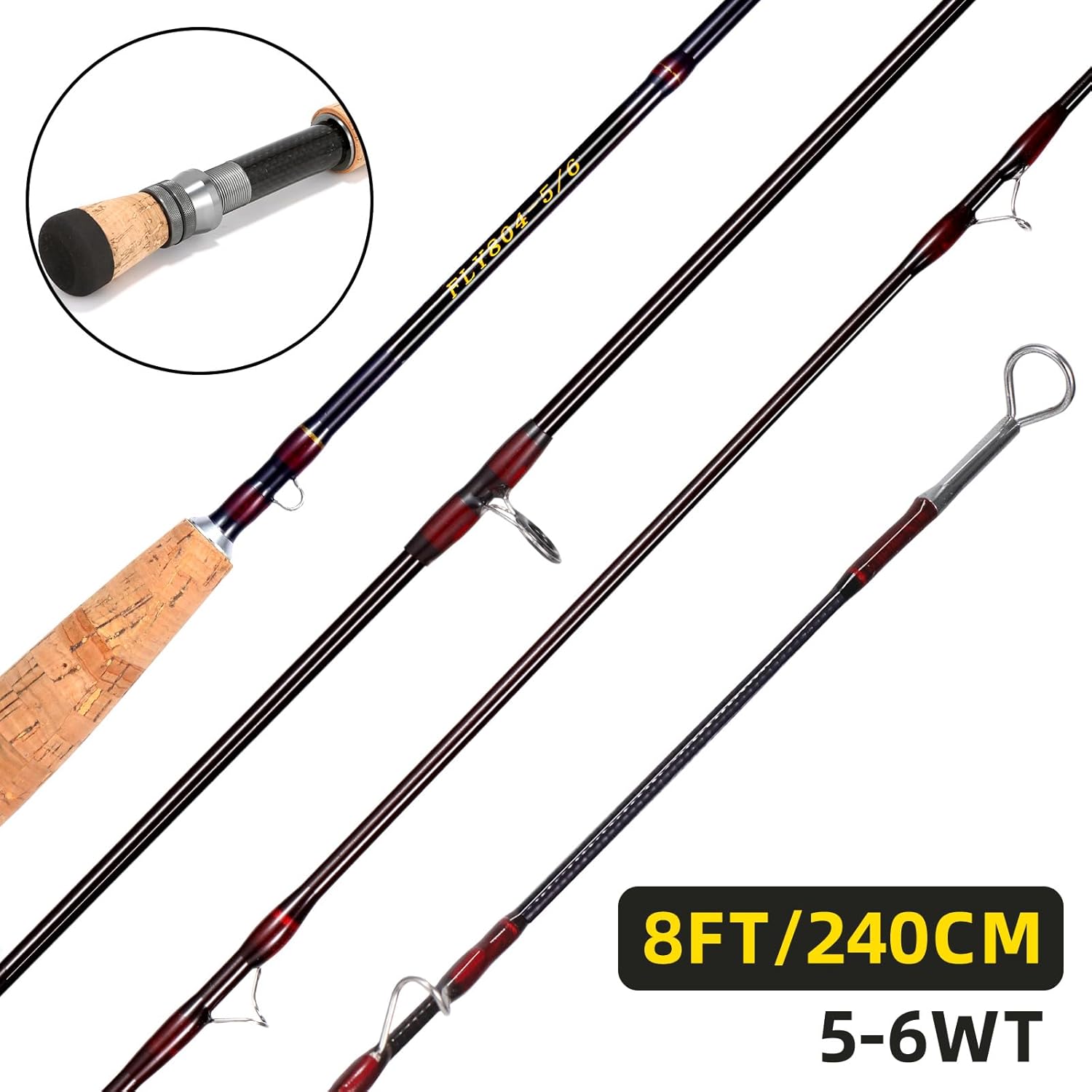 Experience the perfect balance of performance and precision with this premium 8-foot carbon fiber fly fishing rod. Crafted for versatility, this rod accommodates multiple line weights from 3/4wt to 5/6wt, making it ideal for various fishing situations. The 4-piece sectional design ensures easy transport and storage without compromising structural integrity. Its medium-fast action provides excellent casting control and sensitivity, while the lightweight construction prevents fatigue during long fishing sessions. The classic cork grip delivers comfortable handling and enhanced feel, complemented by hard chromed guides that ensure smooth line flow and durability. Whether you're targeting bass in lakes or trout in streams, this rod's thoughtful design and quality components make it a reliable companion for freshwater fishing adventures. The rod's responsive nature helps you achieve accurate presentations and maintain control during the fight, making it suitable for both beginning and experienced anglers.