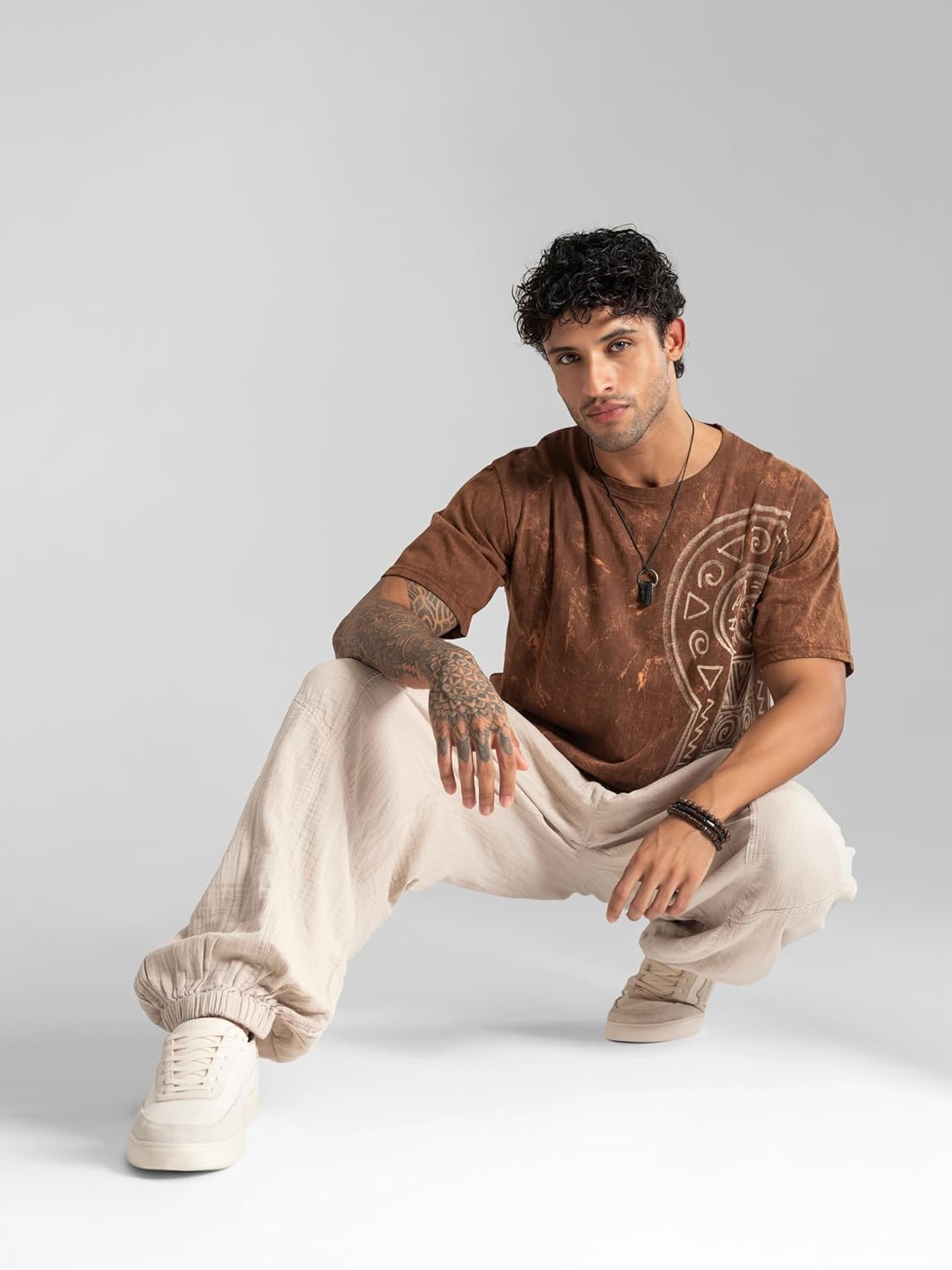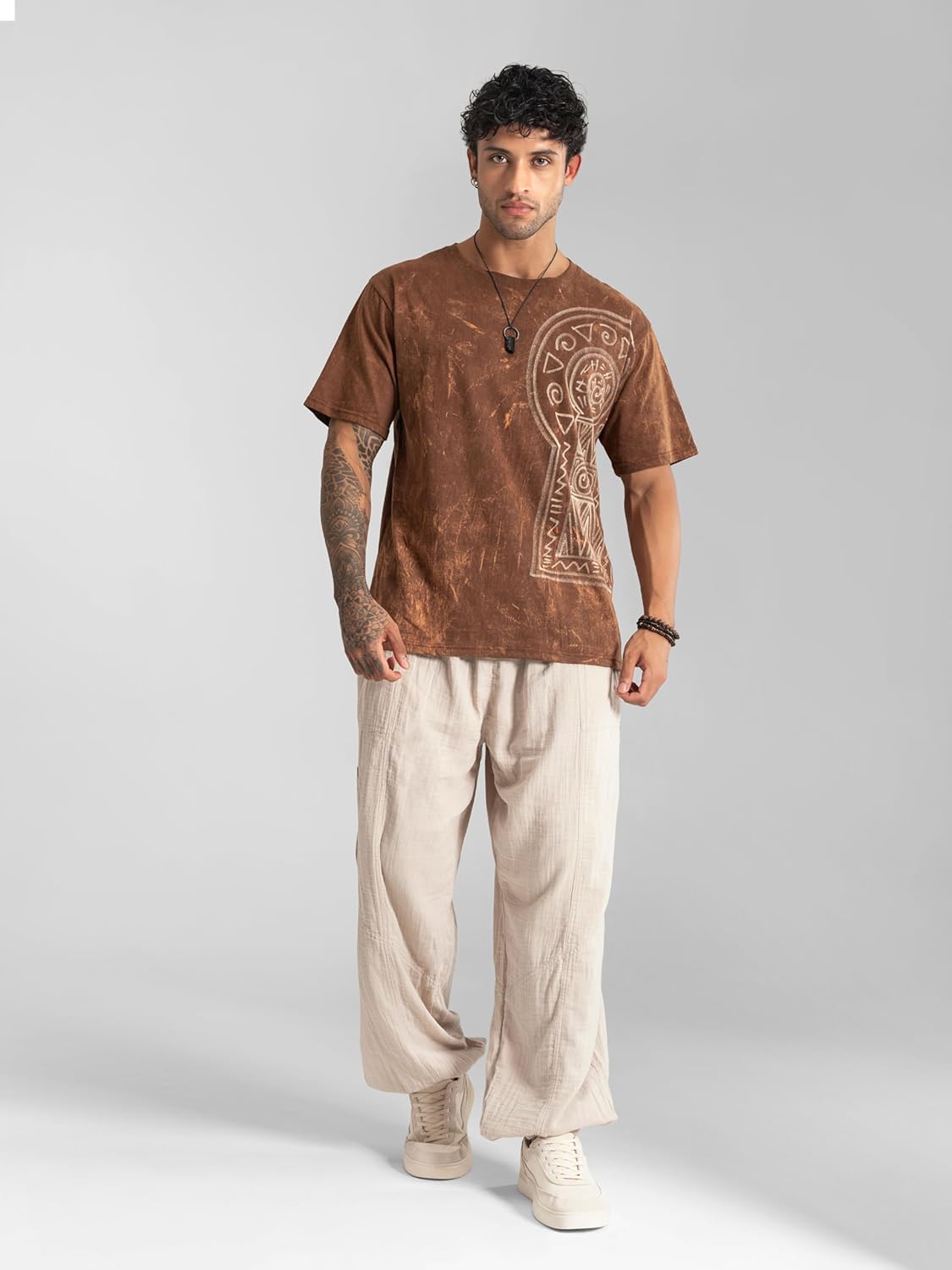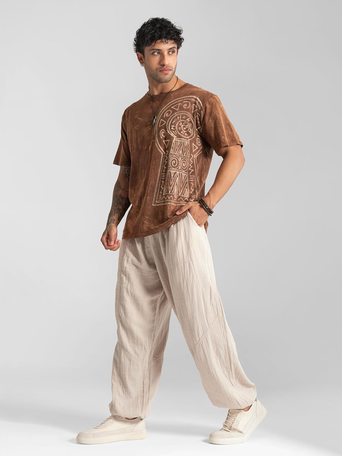 The Veshti Company Men’s Cotton Pants – Lightweight Boho Harem Drawstring Trousers – Soft Travel Yoga Pants